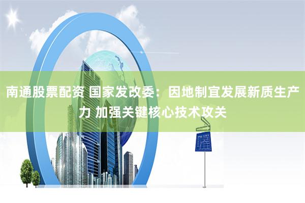 南通股票配资 国家发改委:因地制宜发展新质生产力 加强关键核心技术攻关